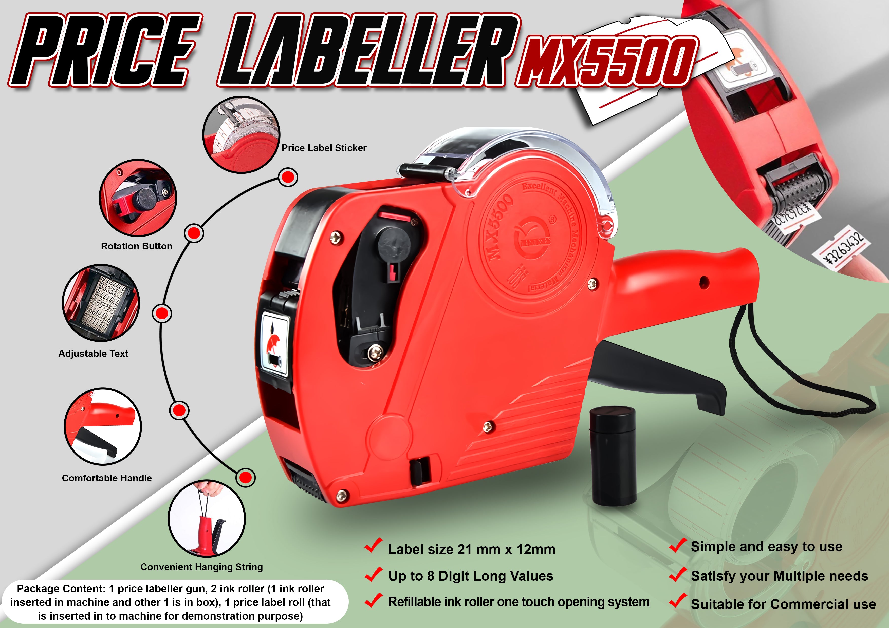 MX-5500 Price Tag Gun 8-digits with paper price label