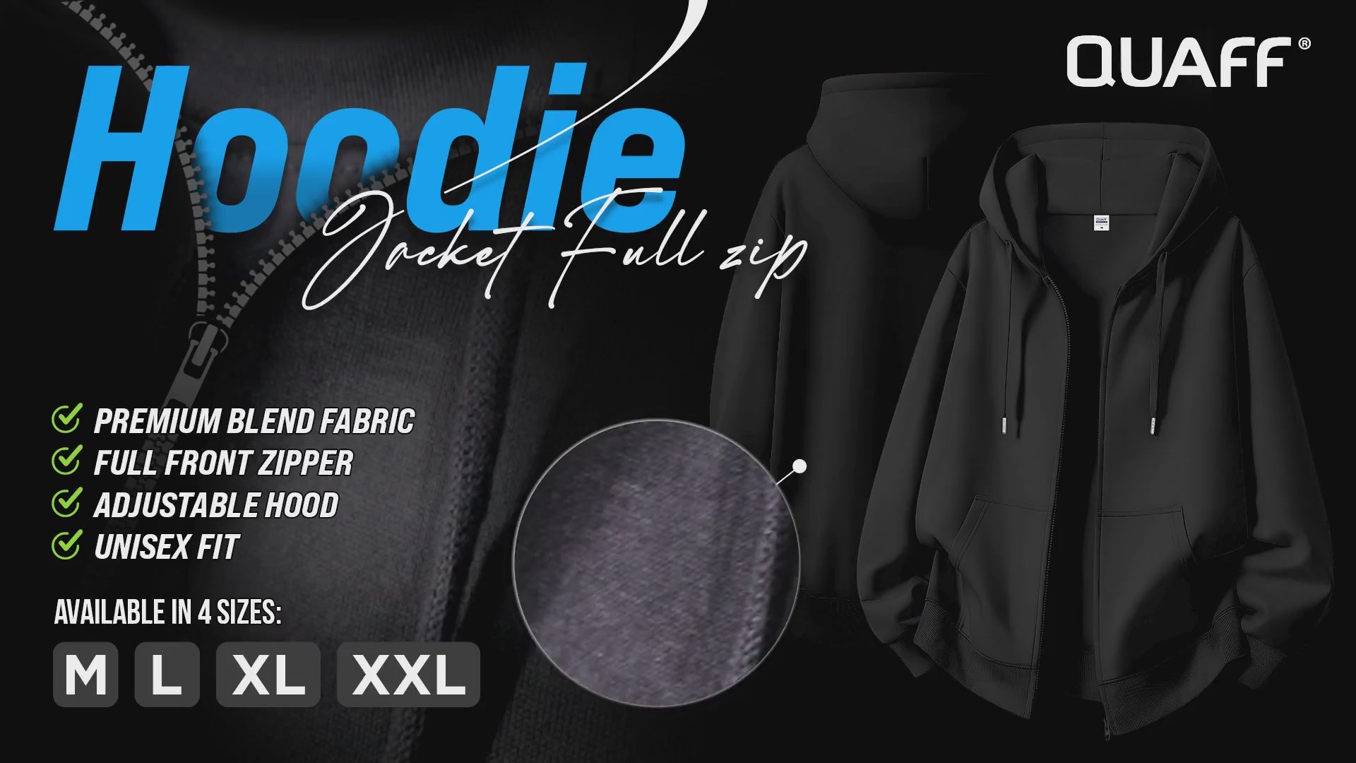 QUAFF 300GSM Hoodie Jacket Full-Zip BLACK🆕